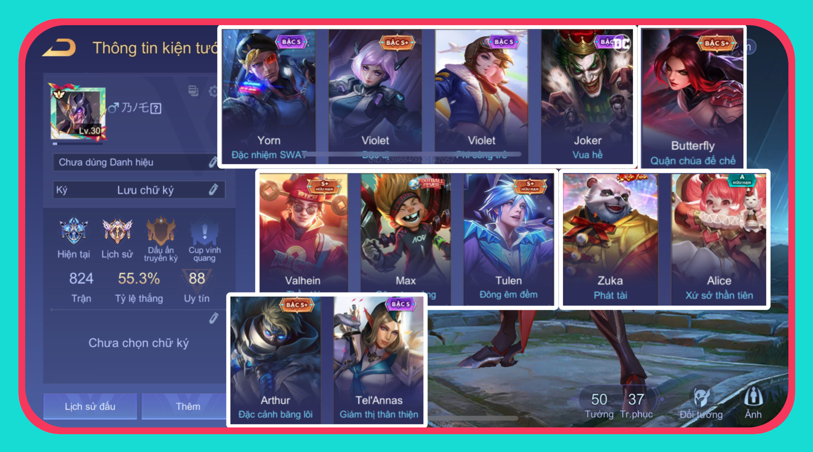 - Tài khoản liên quân có nhiều tướng