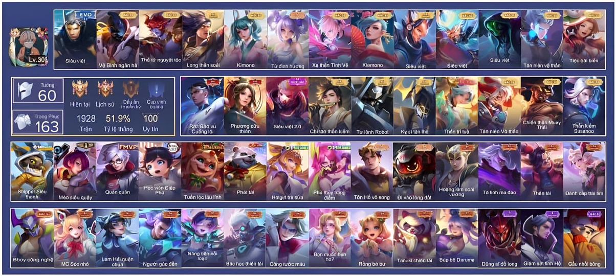 Shop bán nick LQM với nhiều lựa chọn phong phú, quý khách có thể tìm kiếm theo :