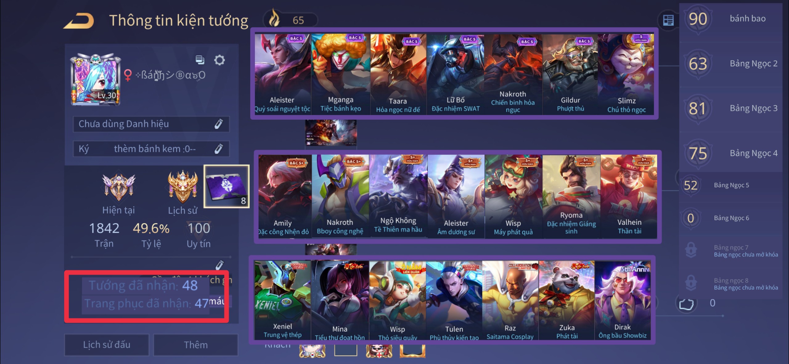 Tài khoản #5638 - Bạc V - Tướng 14 - Trang phục 9 - Ngọc 90