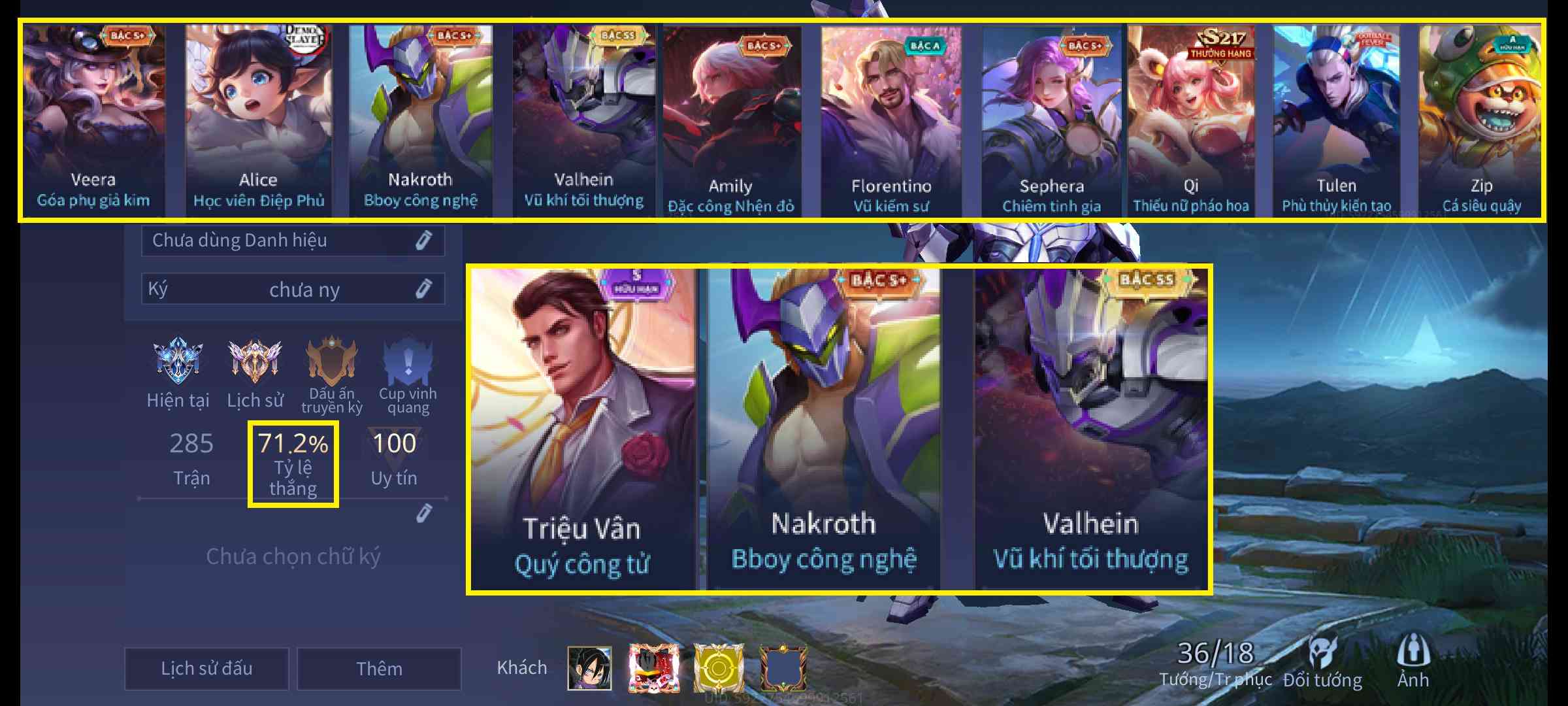 - Tài khoản liên quân có nhiều tướng