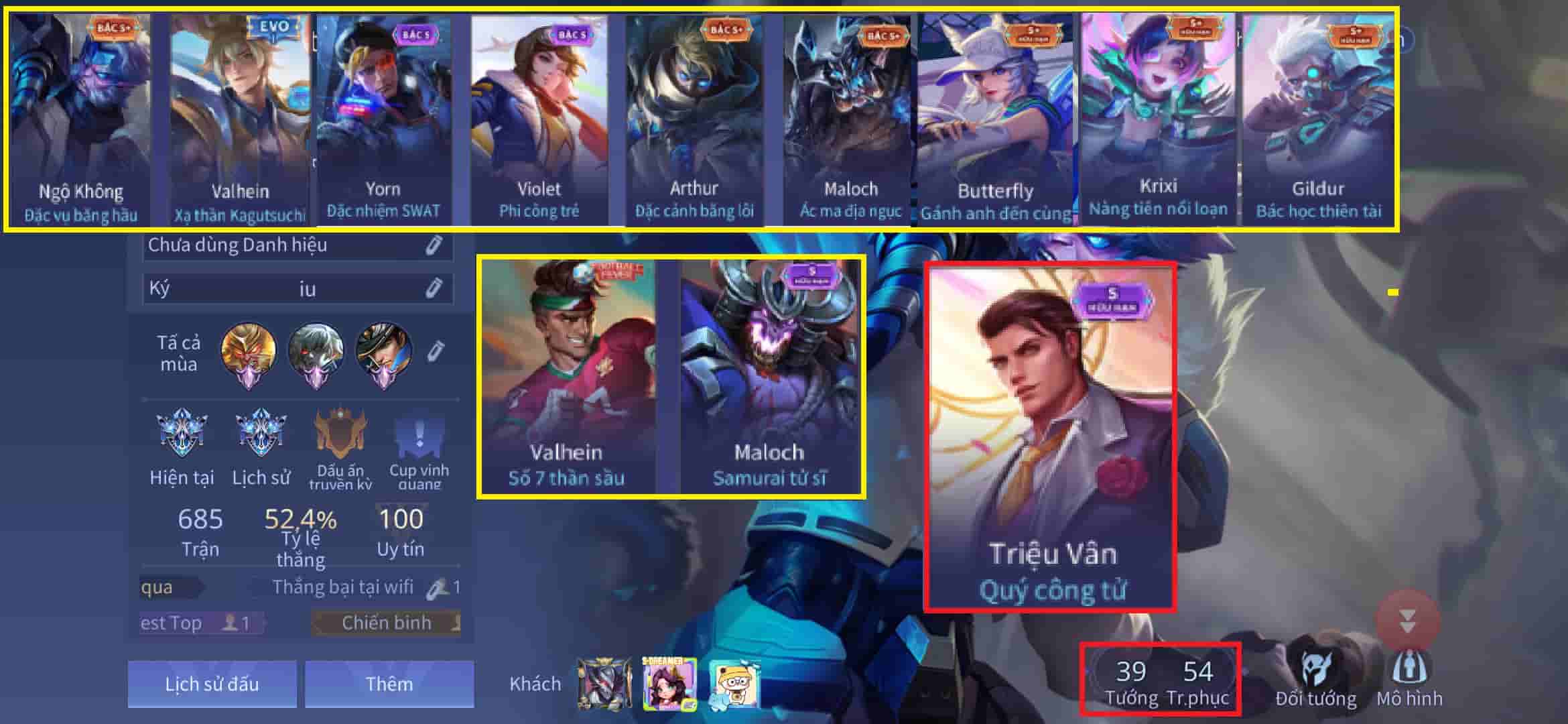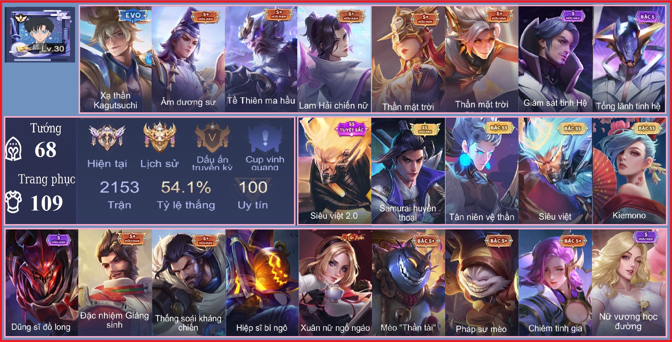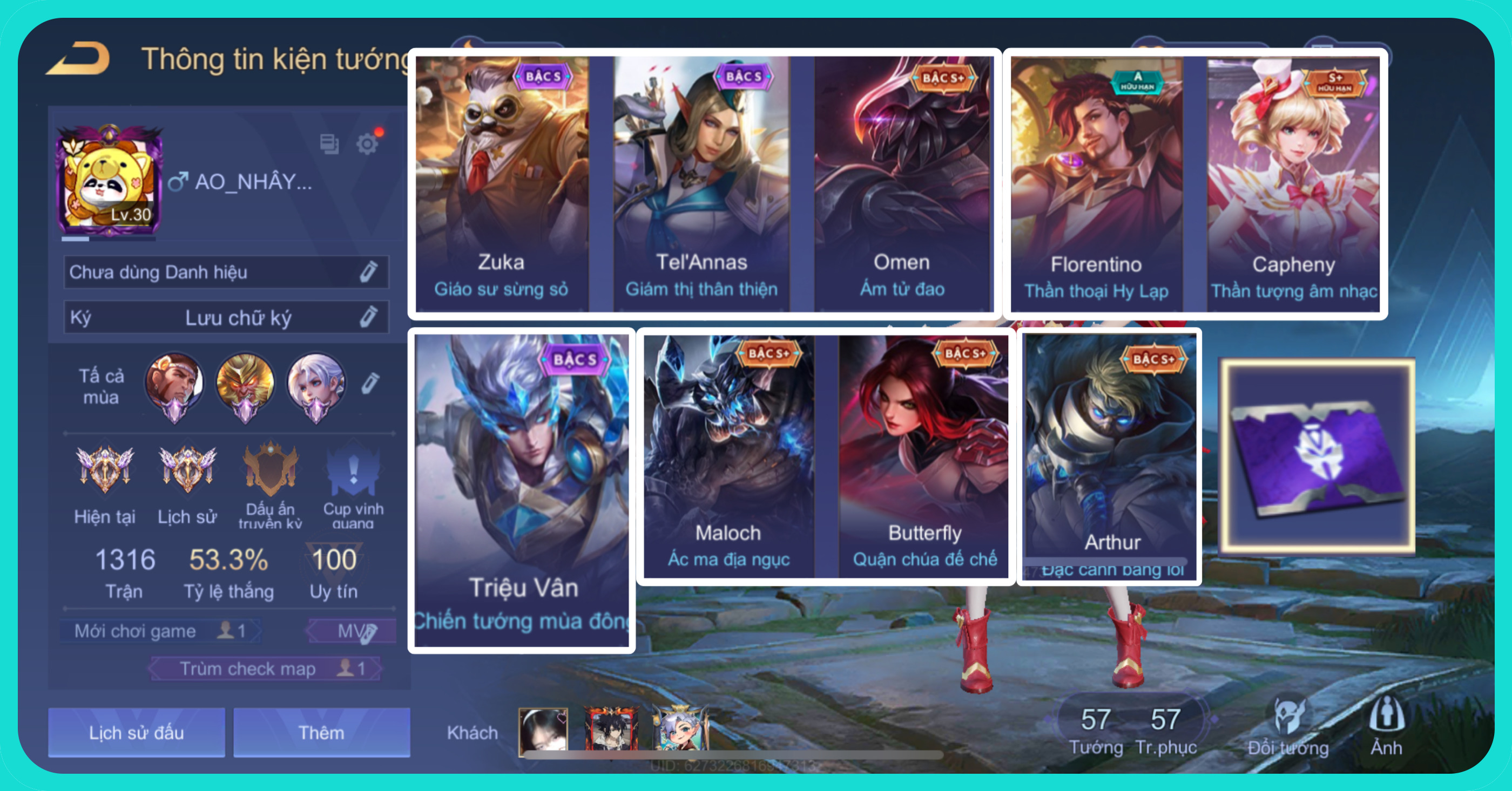 Tài khoản #6471 - Kim Cương IV - Tướng 55 - Trang phục 60 - Ngọc 90