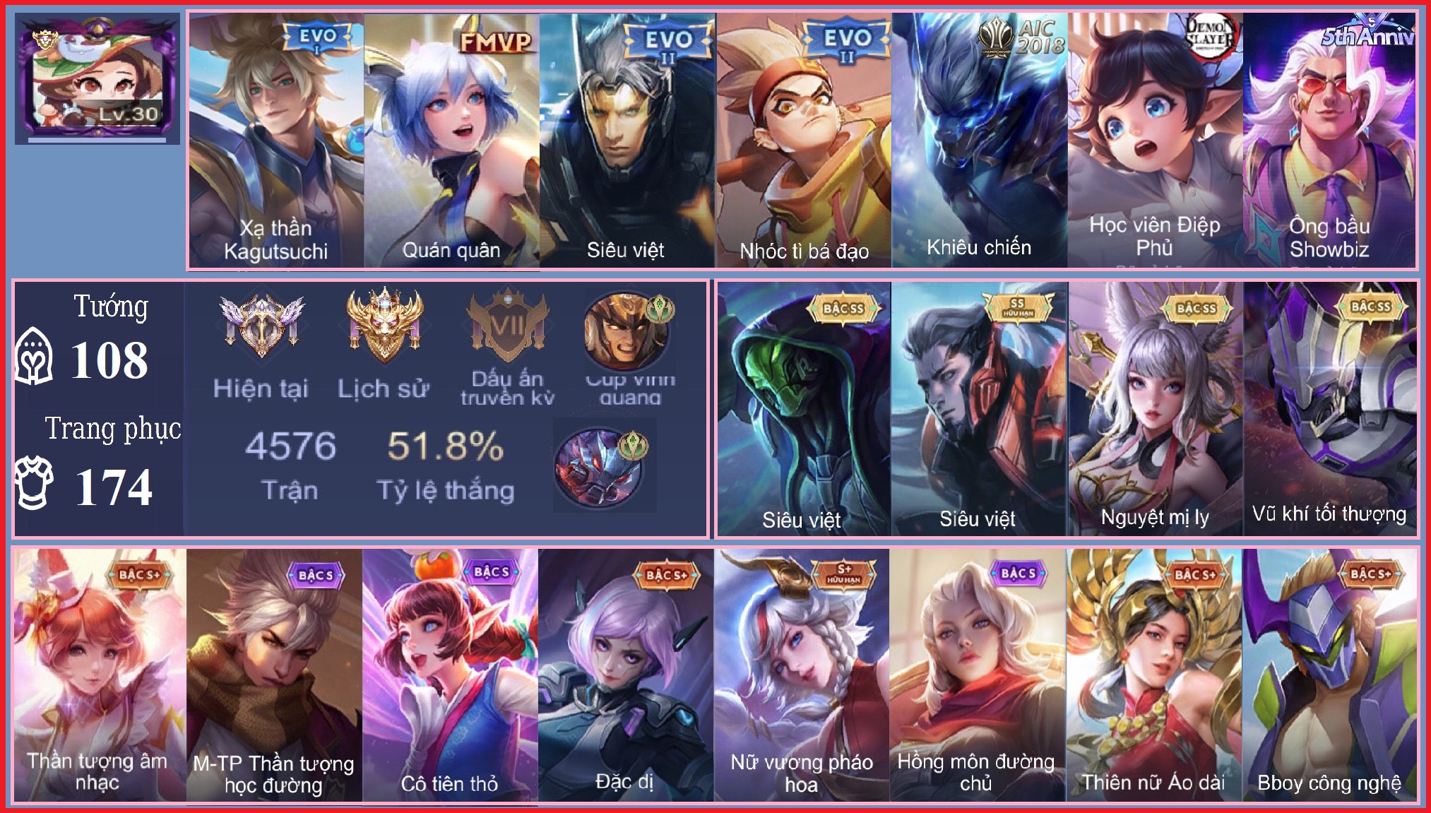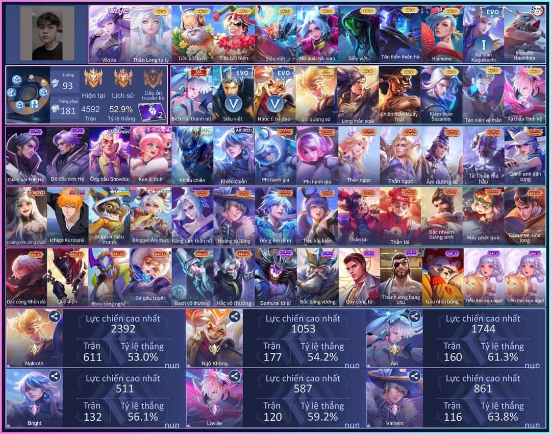 Tài khoản #6542 - Tinh Anh V - Tướng 61 - Trang phục 83 - Ngọc 90