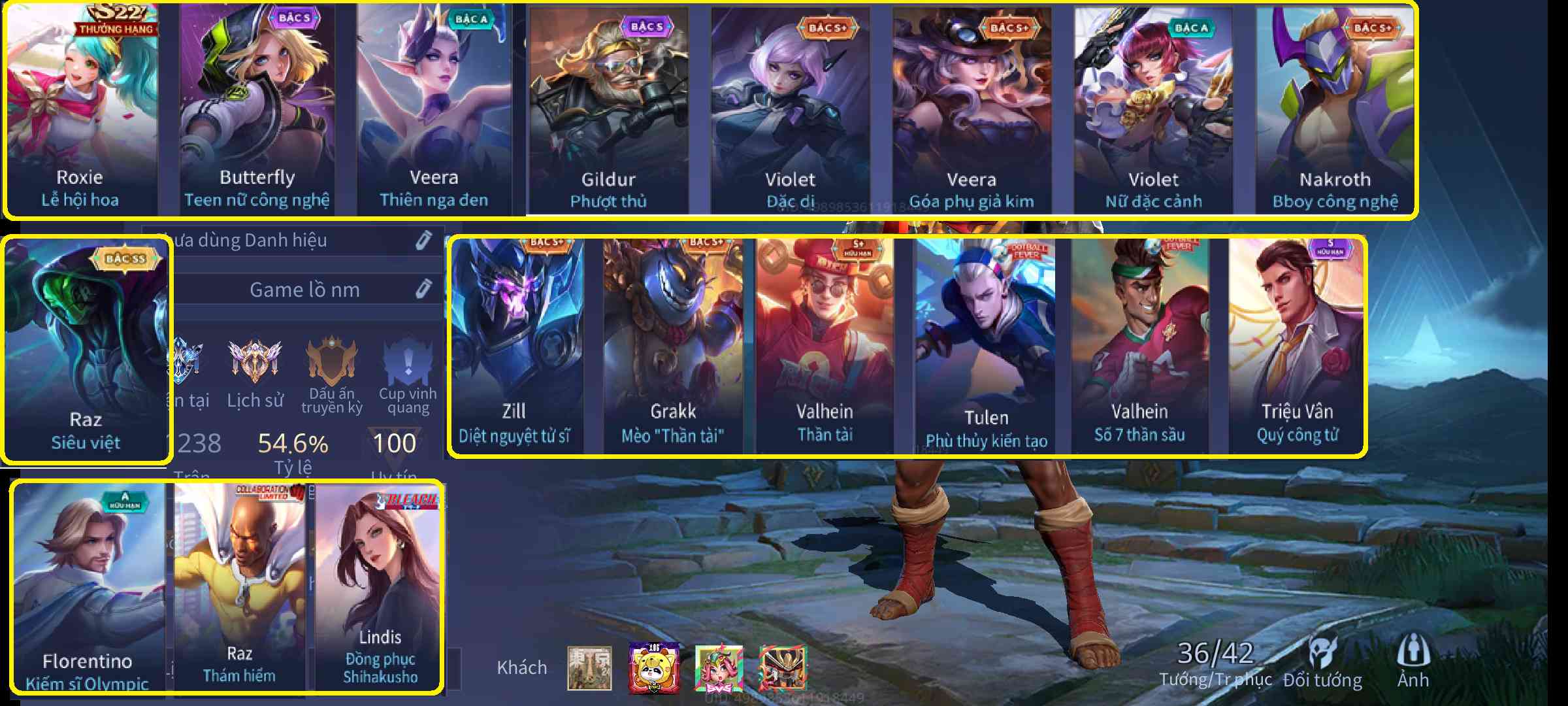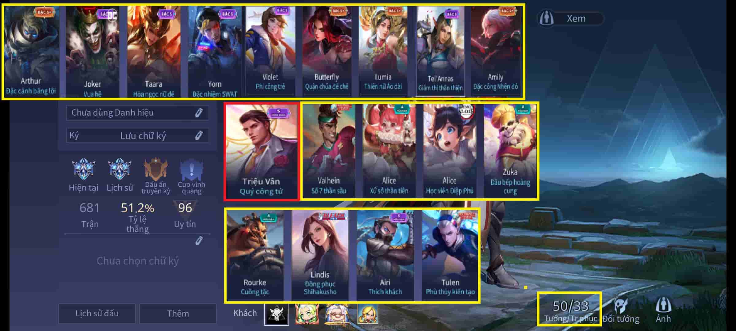 - Tài khoản liên quân có nhiều tướng