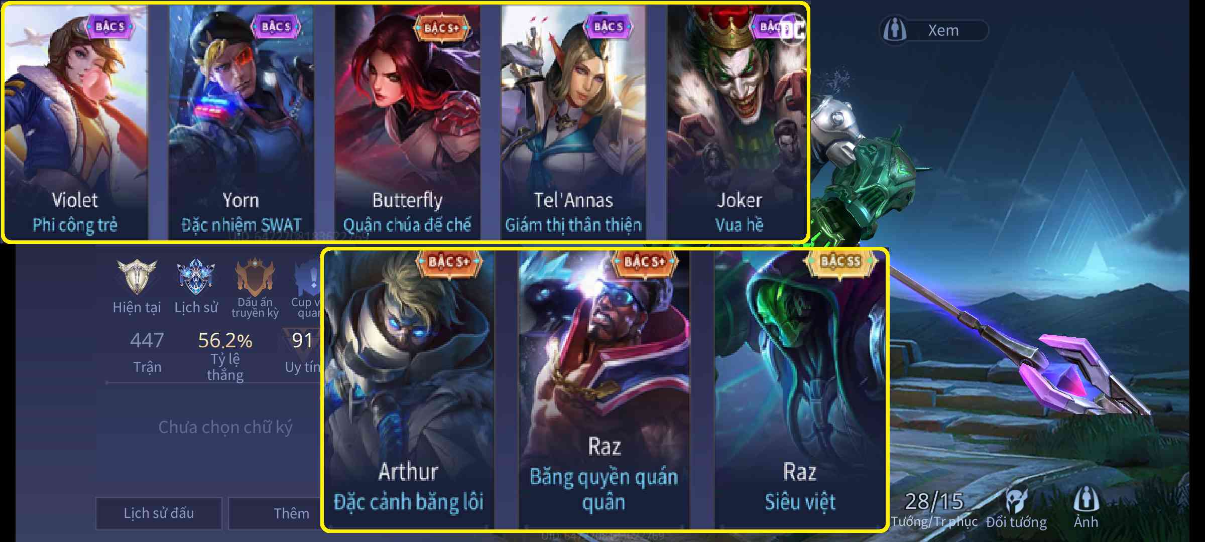- Tài khoản liên quân có nhiều tướng
