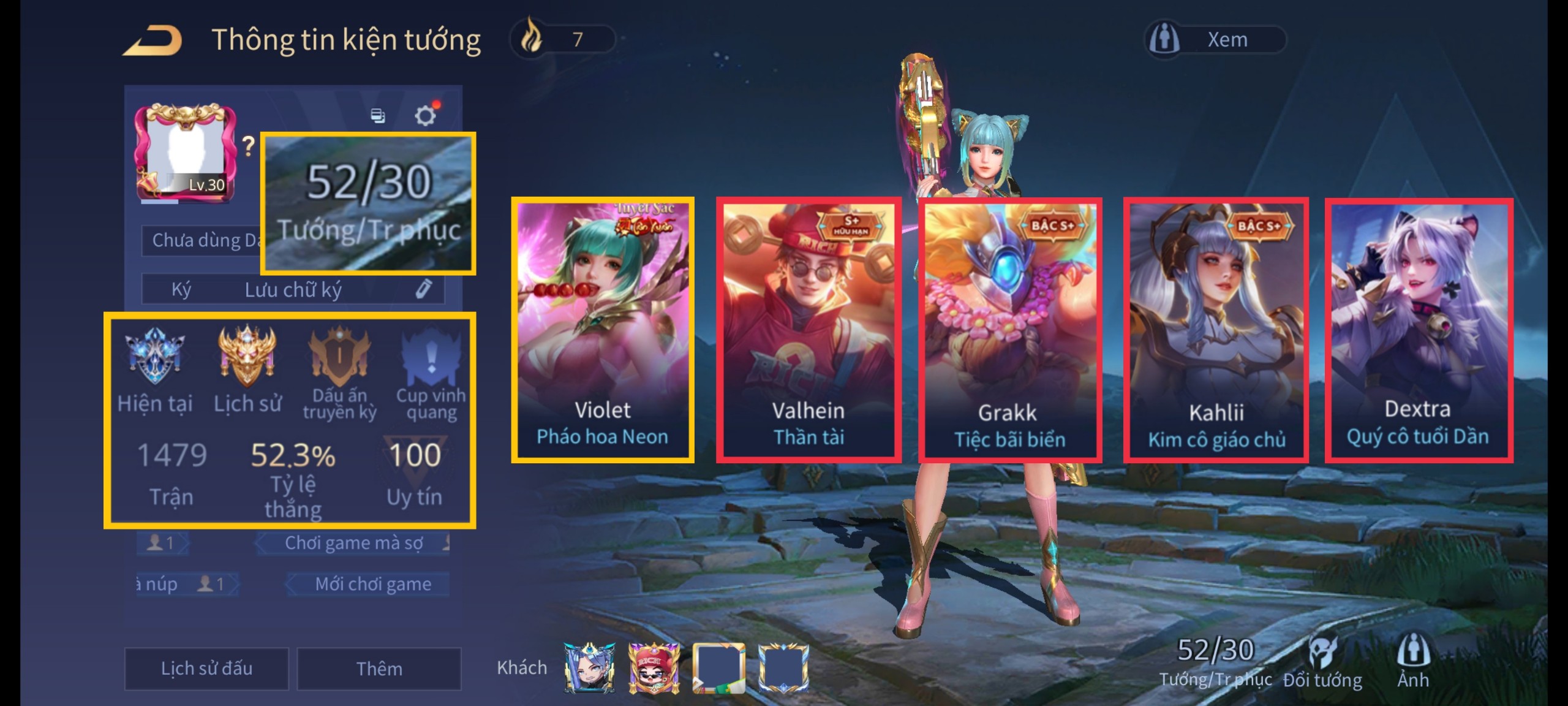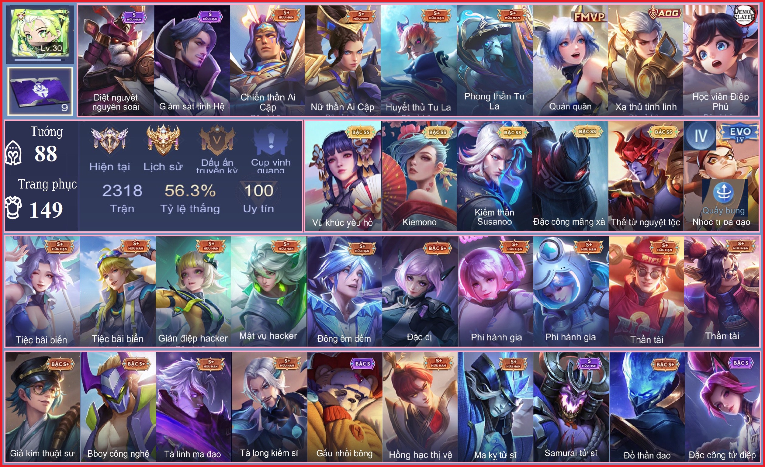 Tài khoản #6741 - Kim Cương I - Tướng 80 - Trang phục 77 - Ngọc 90