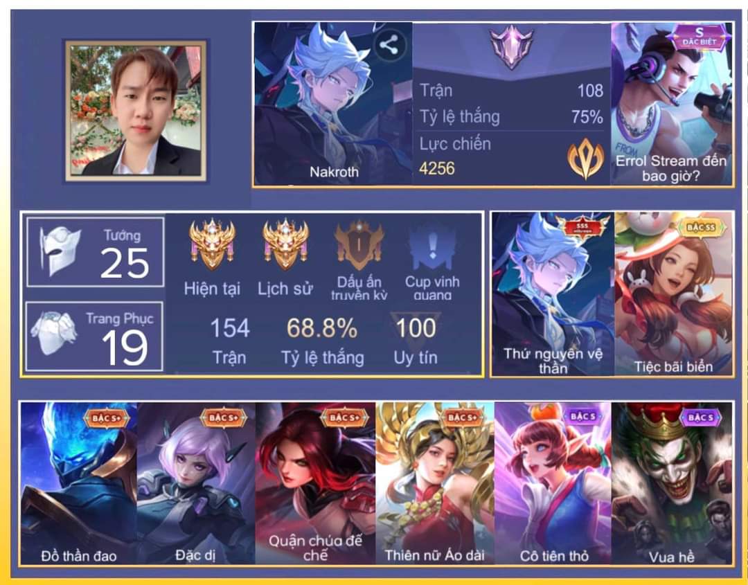 Tài khoản #6741 - Kim Cương I - Tướng 80 - Trang phục 77 - Ngọc 90