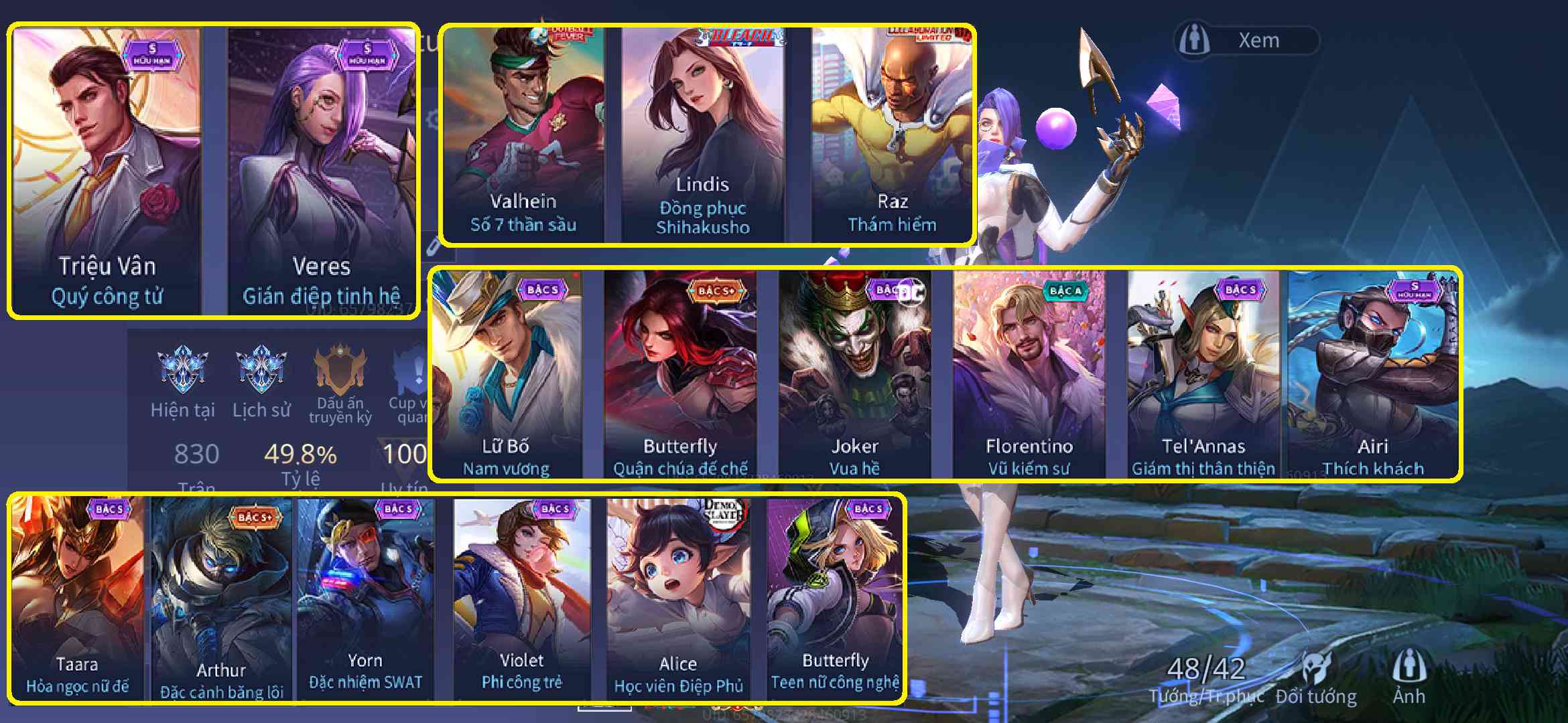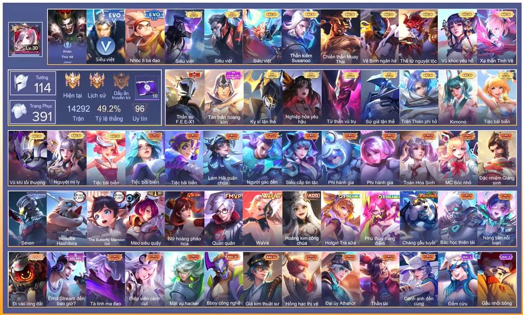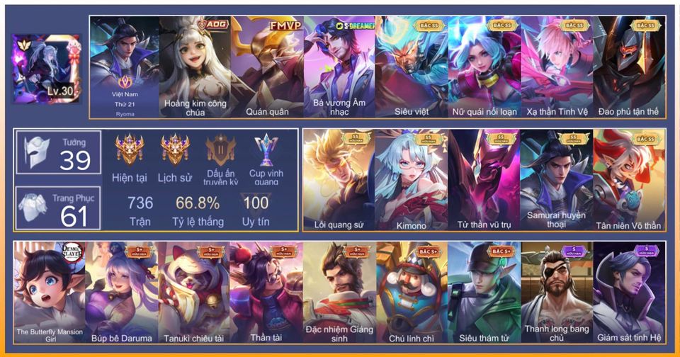 Tài khoản #6748 - Kim Cương III - Tướng 50 - Trang phục 37 - Ngọc 90