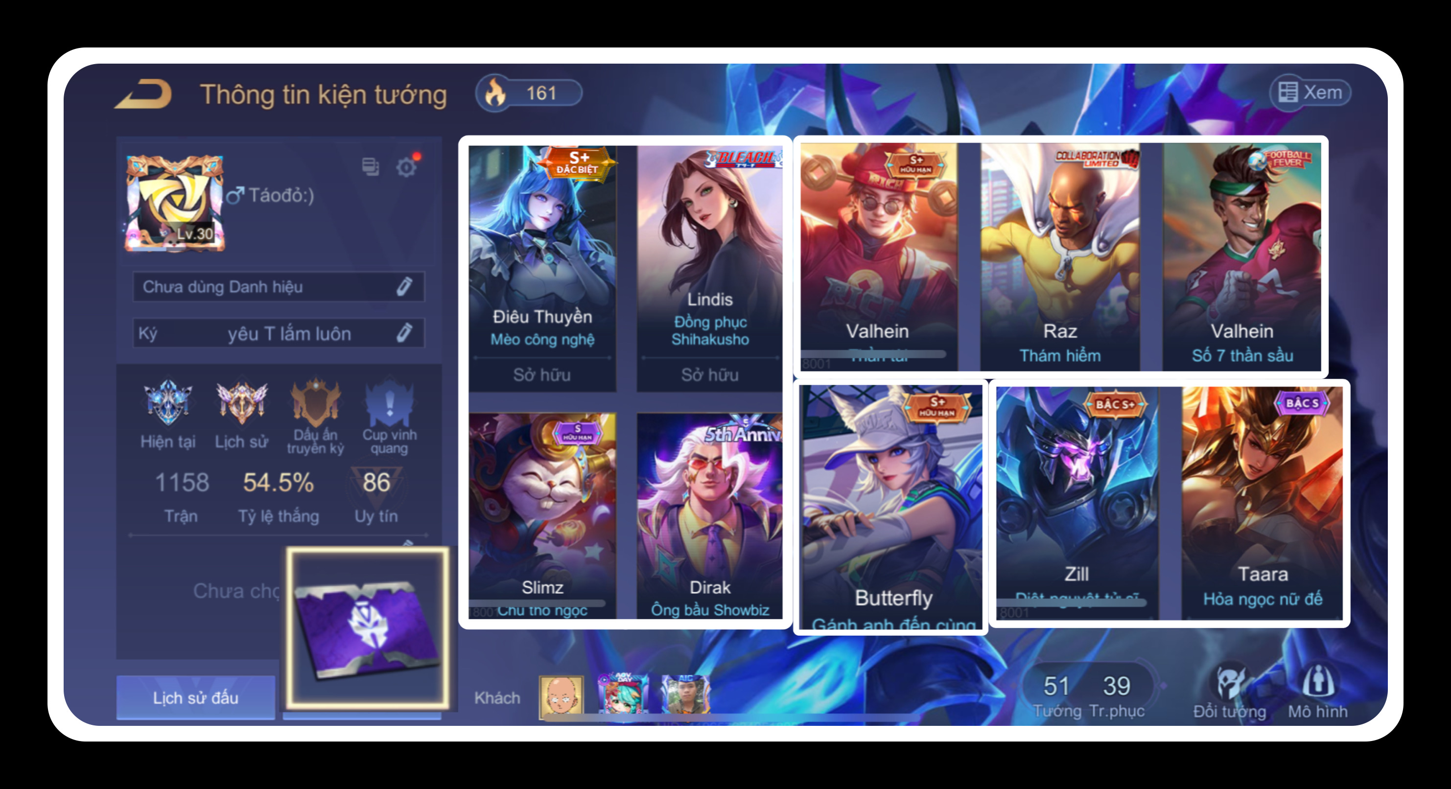 Tài khoản #7174 - Kim Cương I - Tướng 53 - Trang phục 38 - Ngọc 65