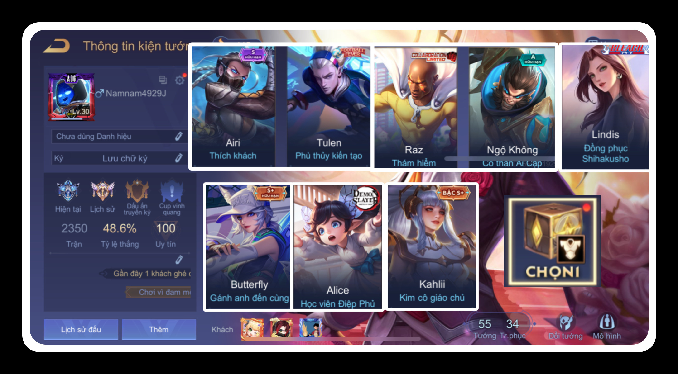 - Tài khoản liên quân có nhiều tướng