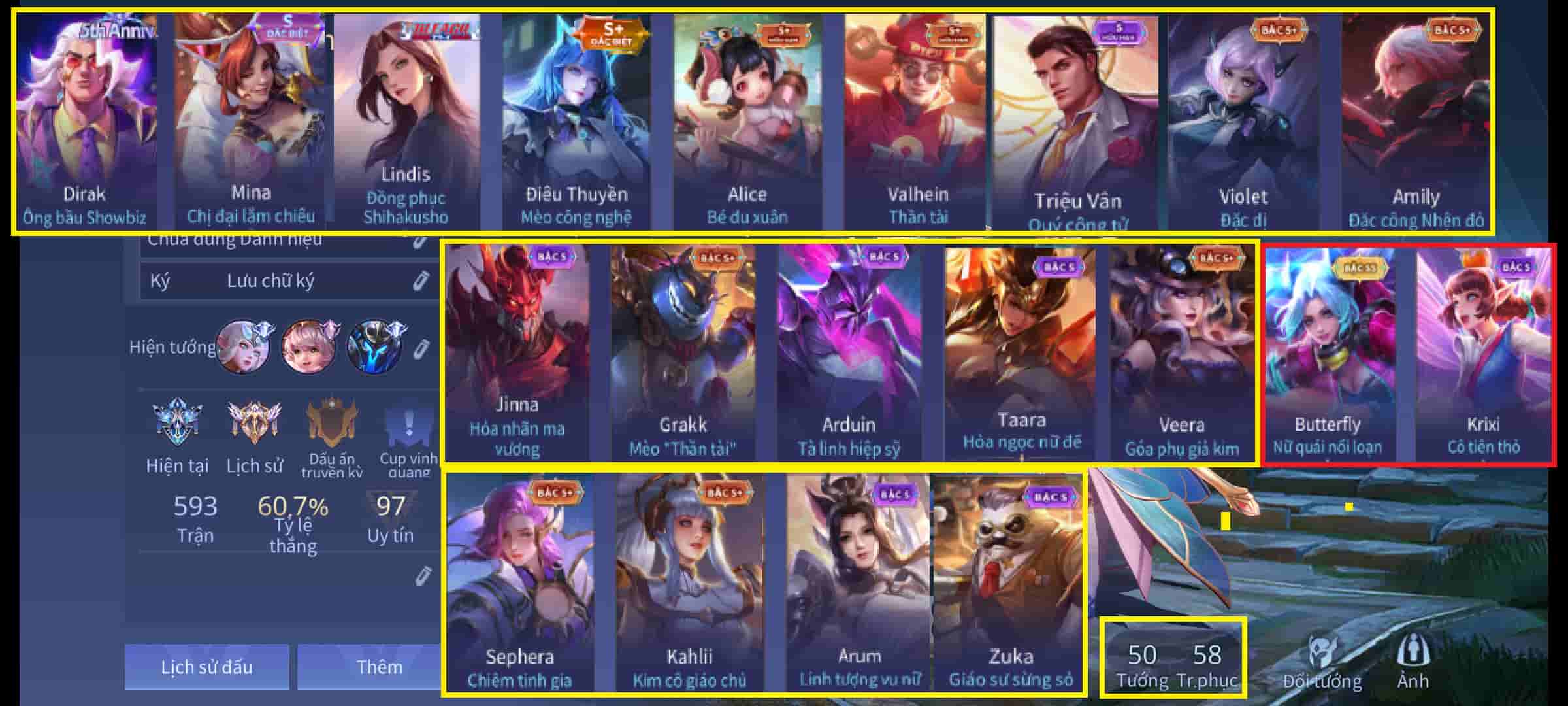 Tài khoản #7180 - Tinh Anh I - Tướng 35 - Trang phục 27 - Ngọc 90